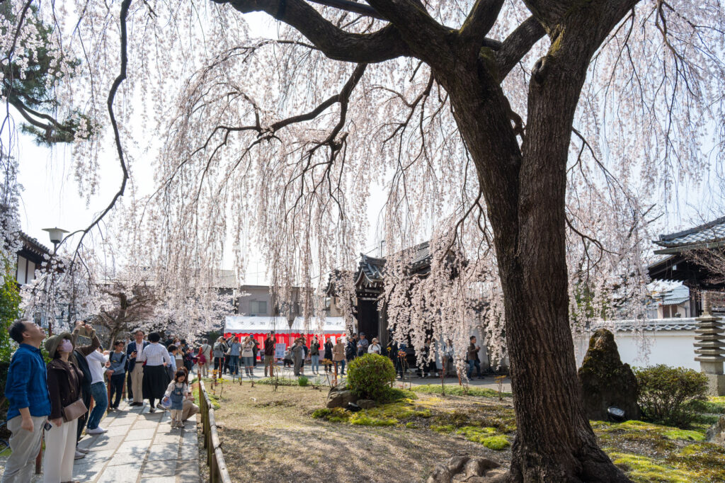 今年も京都市内のひっそりとした隠れた名所、本満寺で、市内でも最も美しいと評される枝垂れ桜が訪れる人々を魅了しました。京都御所と出町柳商店街の近くに位置するこの寺院は、その壮美な桜で知られていますが、一般的にはあまり知られていない穴場スポットです。