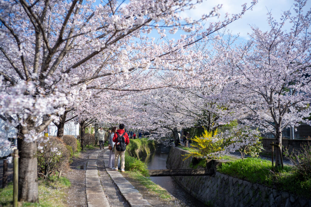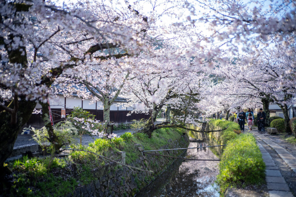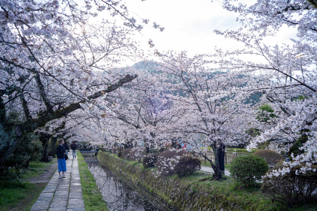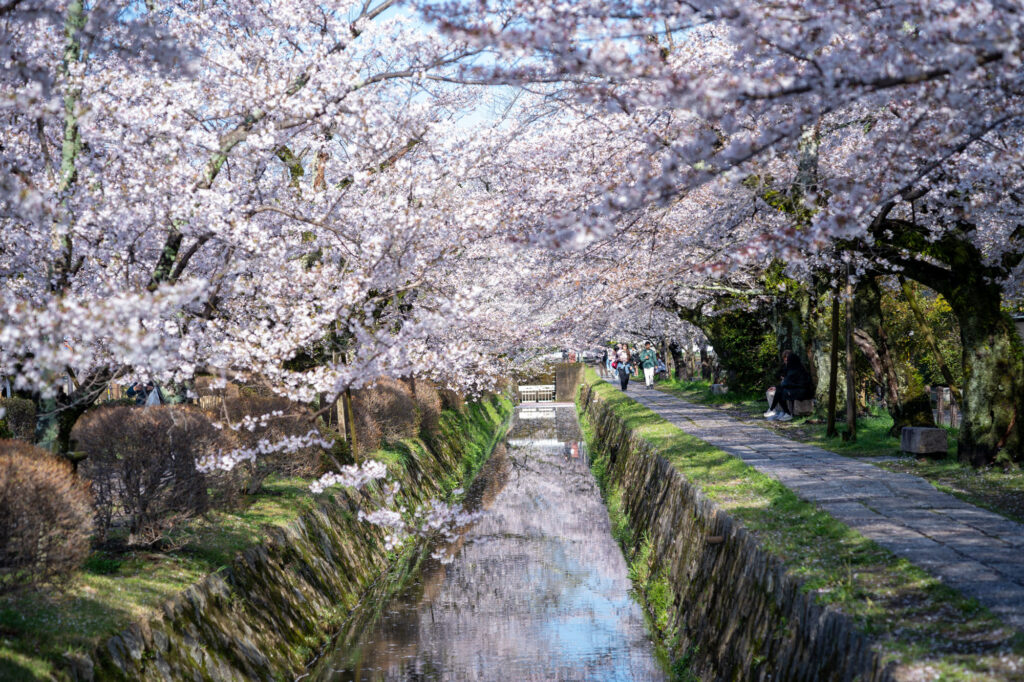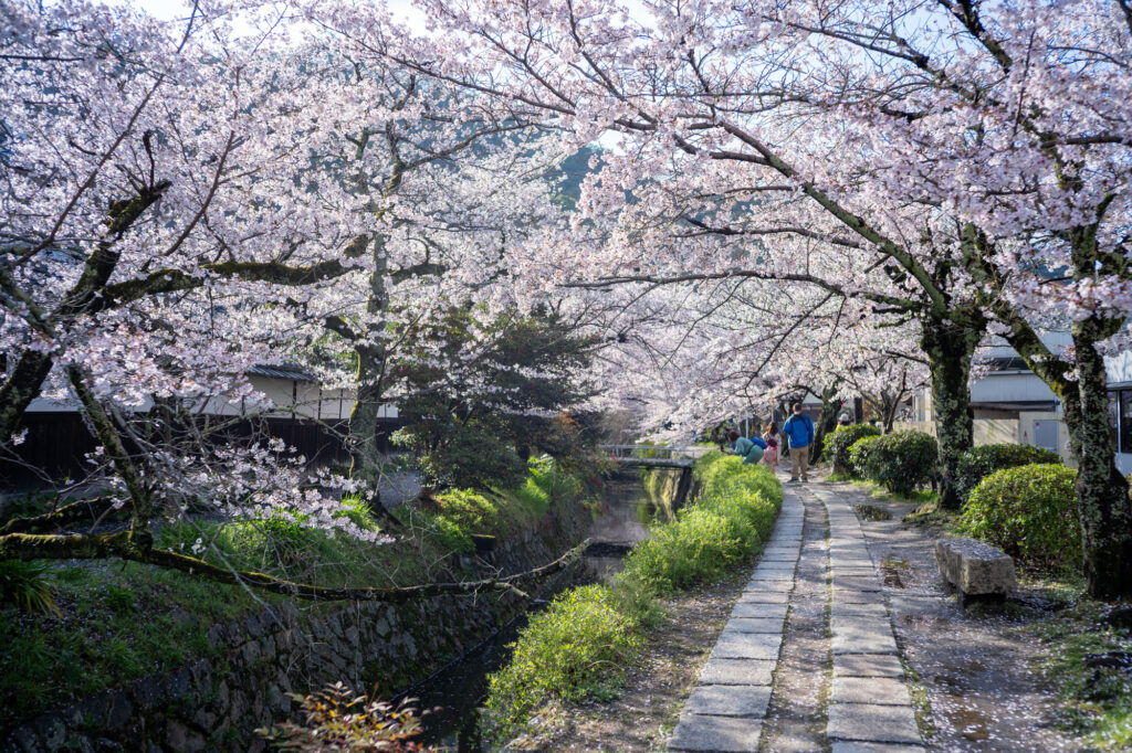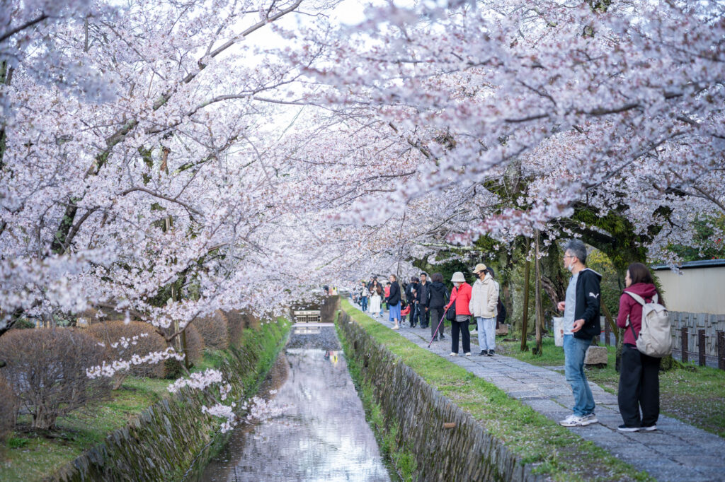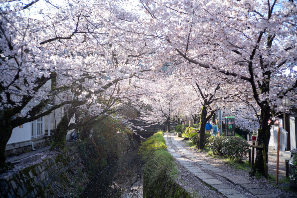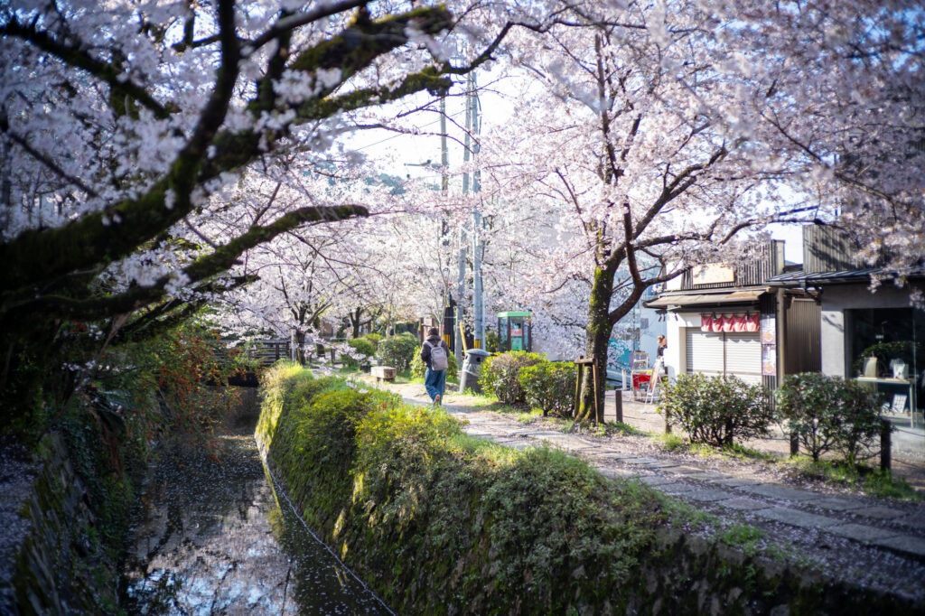 京都の喧騒を離れ、銀閣寺から続く「哲学の道」を歩きました。約2kmにわたる疏水沿いは、今まさに満開の桜に包まれています。